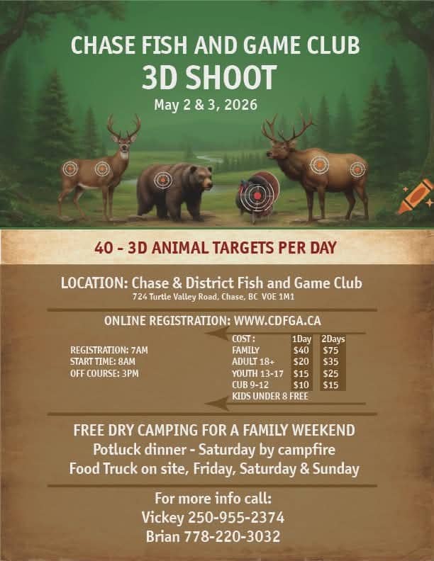 DON’T FORGET PAYMENT: Send your e-transfer payment to chasedistrictfishandgame@gmail.com. Memo your e-transfer as 3D REGISTRATION so that accounting can keep it separate from other monies deposited and we can track the registration.